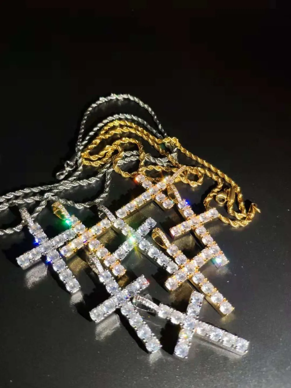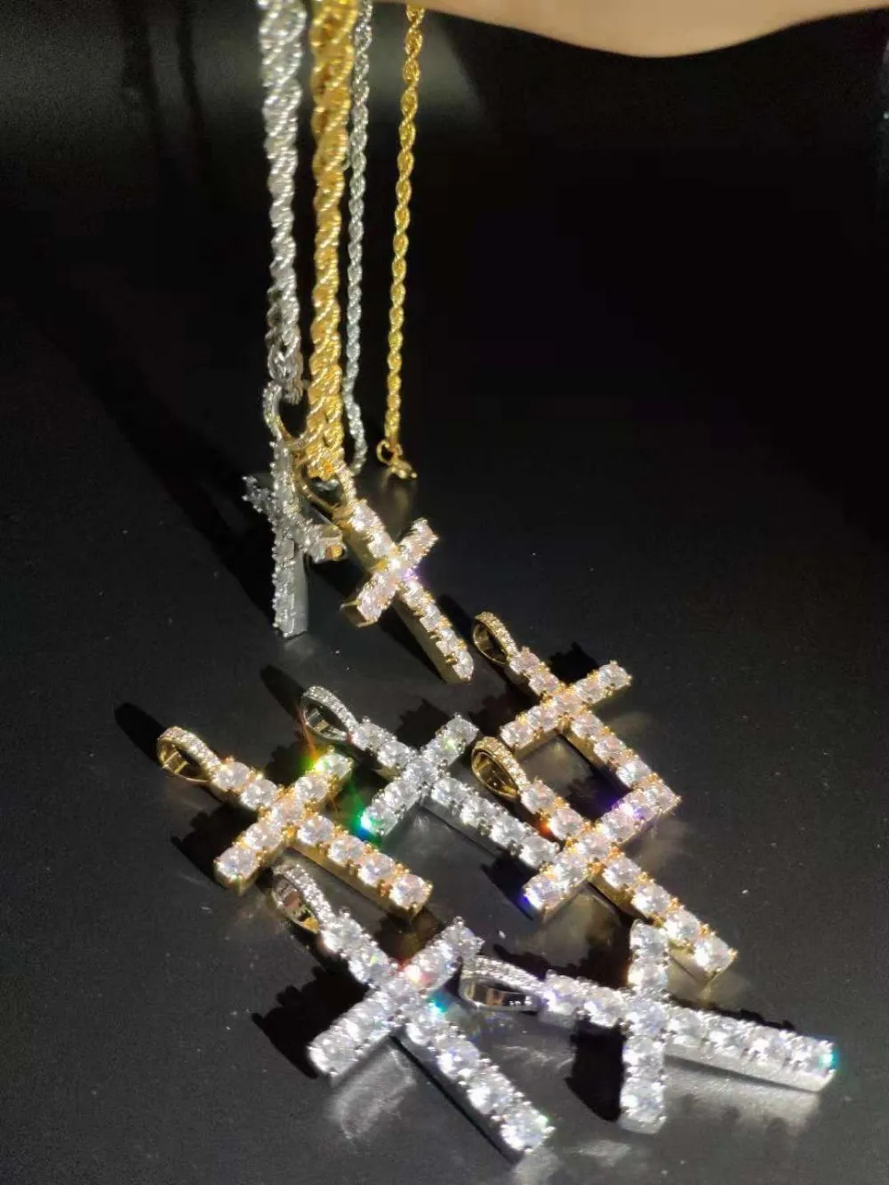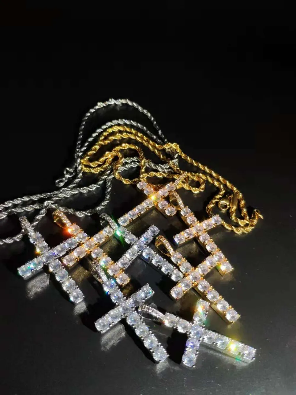 Eskeem Factory Wholesale Hop Jewelry Christian Jesus Cross Solid Pendant Necklace AAA Zircon Cross Pendant for Sale